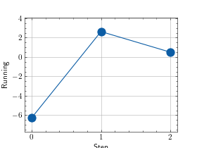 >>> # Example plotting multiple values >>> import torch >>> from torchmetrics.wrappers import Running >>> from torchmetrics.aggregation import SumMetric >>> metric = Running(SumMetric(), 2) >>> values = [ ] >>> for _ in range(3): ... values.append(metric(torch.randn(20, 2))) >>> fig_, ax_ = metric.plot(values)